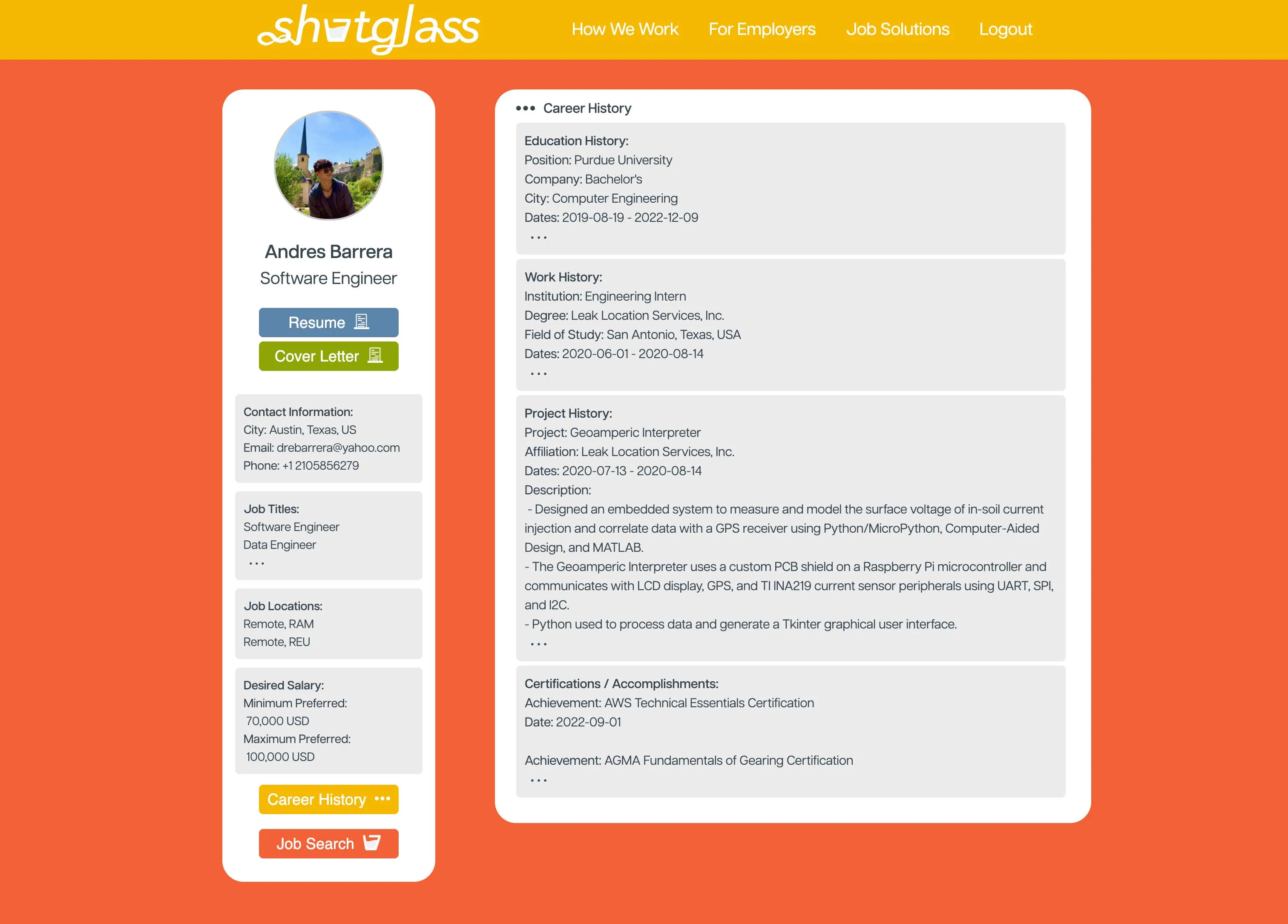 Although not yet complete, the Shotglass Jobs shows great promise for providing a personalized and automated experience. The project is currently awaiting the production of the ArachNode AI (explained in another one of my projects) to provide the information search algorithm to be used by the web application. So far, the use of AWS services has ensured a scalable, secure, and efficient infrastructure, as shown in the live examples of the site below, where I have collected and displayed data with persistant authentication.