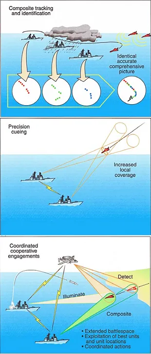 As a full time employee at a US Department of Defense contracting company, I worked on a project with the goal of modernizing the US Department of Defense's Cooperative Engagement Capability (CEC) system. As shown in the figure to the left, CEC is a system crucial to tactical tracking and engagement by collecting, aggregating, and controlling both local and networked data on warships, jets, and sensors. For example, by aggregating entity position data from different sources and vantage points, a strategically placed asset is able to better address an adversary entity. Although a powerful mechanism, the software responsible for CEC data aggregation was programmed in the 1990s and is due for an update.
